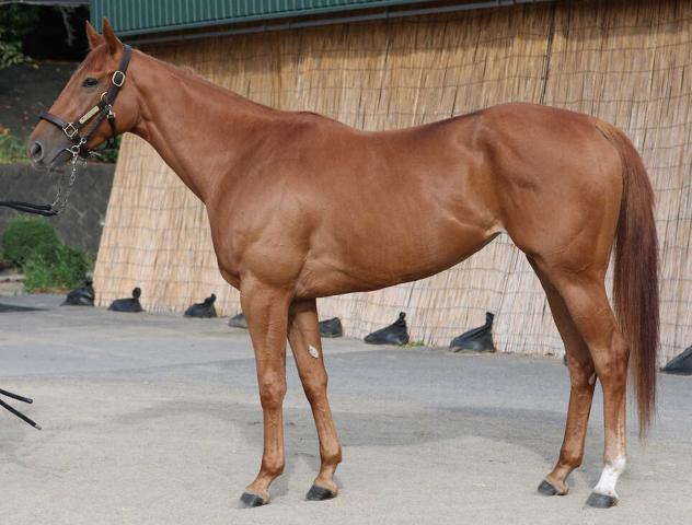 太い首と深い胸、全身に強い筋肉を備えたマイラー体形。ふっくらした好馬体ですが、前進気勢の強い立ち姿から距離延長が鍵。